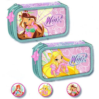 • Cette trousse représente Bloom en tenue Sophiex. Les couleurs sont assorties et même le logo Winx Club prend les couleurs du thème.