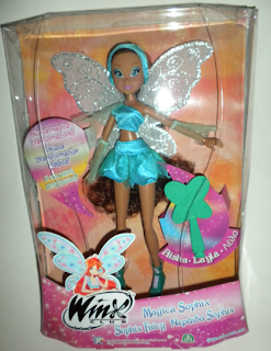 Page d'un magasine montrant Stella, Tecna et Flora Sophix ( et Bloom Sophix dans sa boîte tout en bas ).
